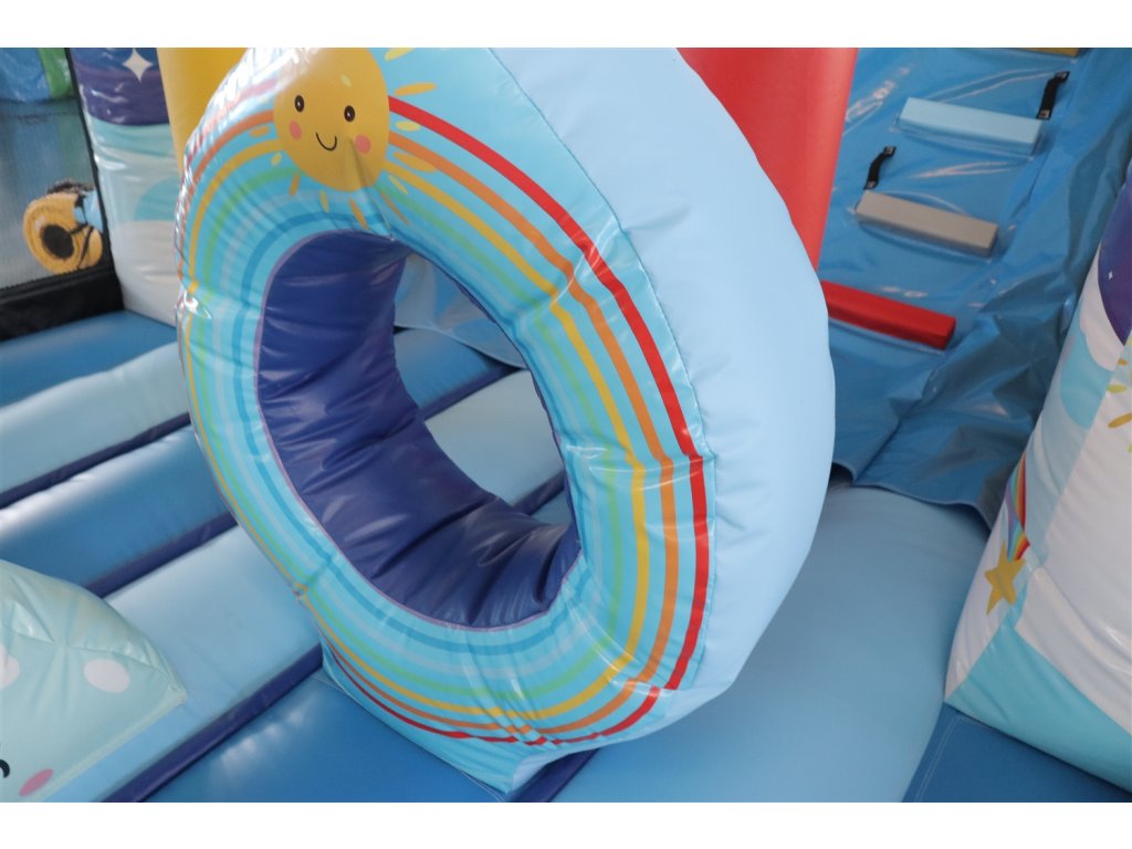 Nafukovací parkour, prekážky, preliezky, šmykľavka.