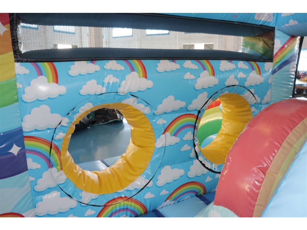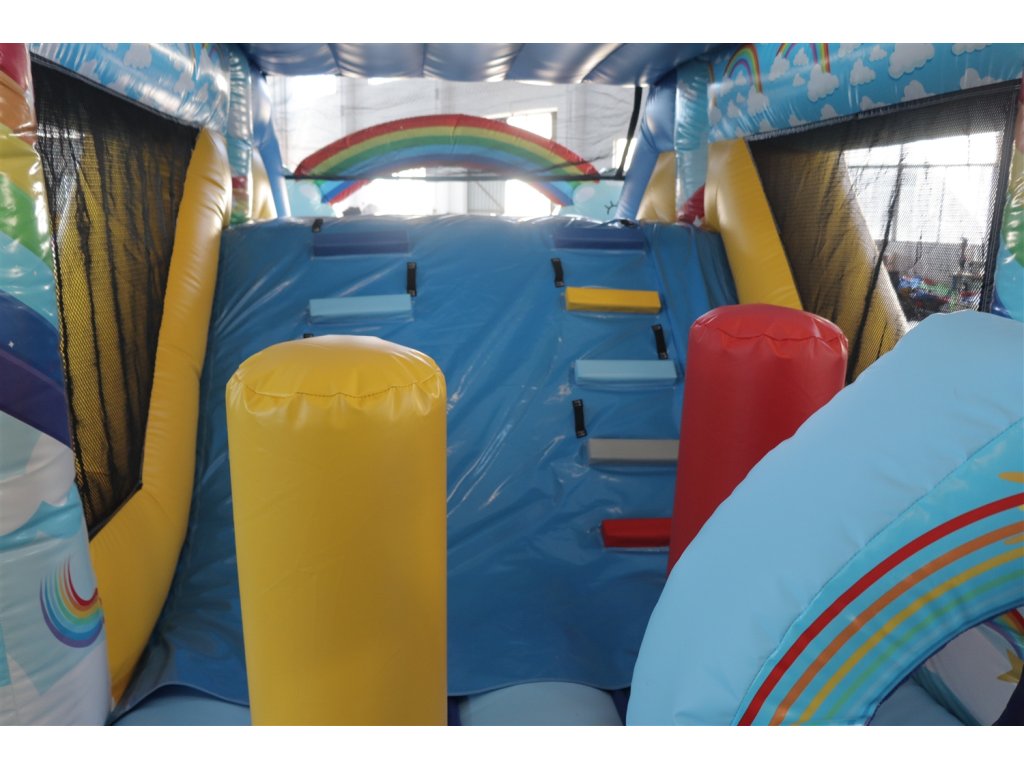Nafukovacia opičí prekážková dráha v štýle dúhy. Rainbow Run.