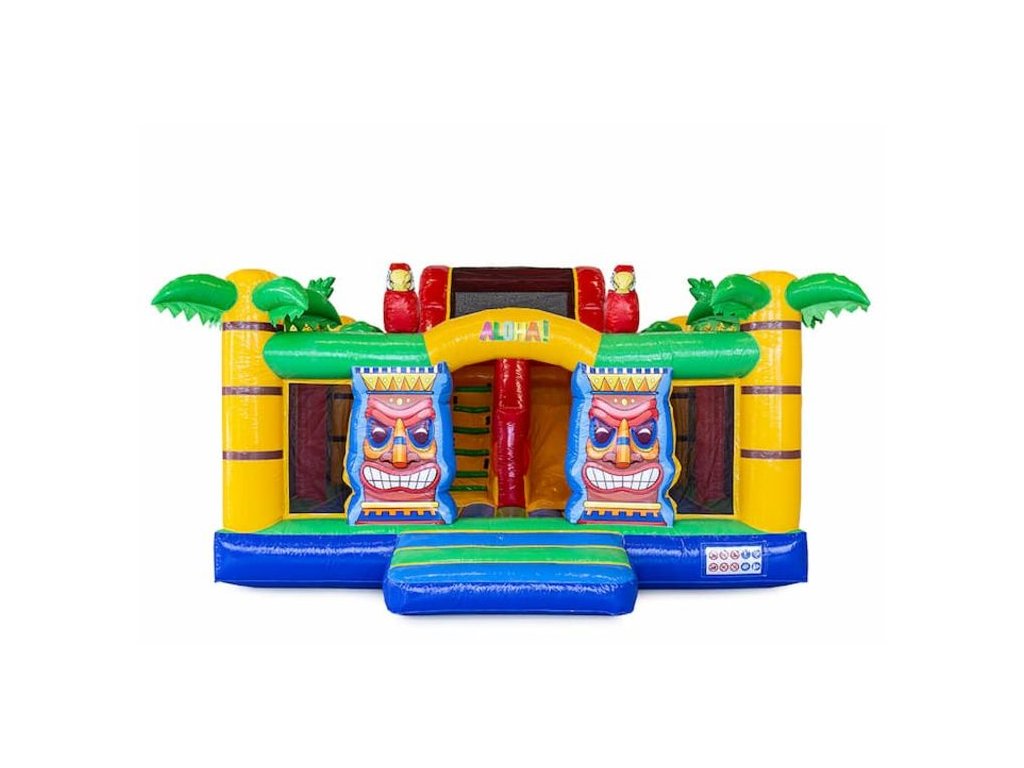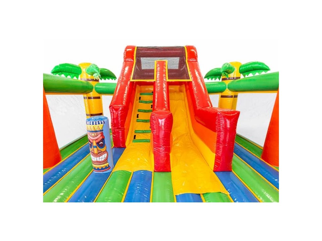 Tématicky ladené prevedenia (napr. Aloha, Dino, Safari, Oceán, Surfer a ďalšie) zaujmú deti pestrými farbami, 3D prvkami a kvalitnou potlačou. Atrakcia je vyrobená z odolného PVC Tarpaulinu s UV ochranou a zosilnenými švami, čo zaručuje dlhú životnosť a bezpečné používanie.