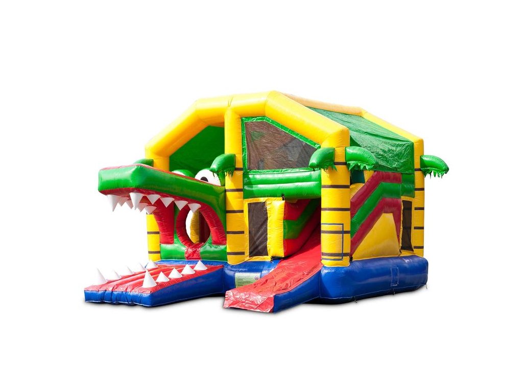 Profesionálny nafukovací hrad s hernými prvkami, šmýkačkou a strieškou – ideálna atrakcia pre deti vo veku 4–10 rokov. Tento typ patrí medzi najobľúbenejšie tematicky ladené skákacie hrady s veselou potlačou, ktoré spájajú skákanie, lezenie a šmýkanie v jednom bezpečnom a kompaktnom celku.