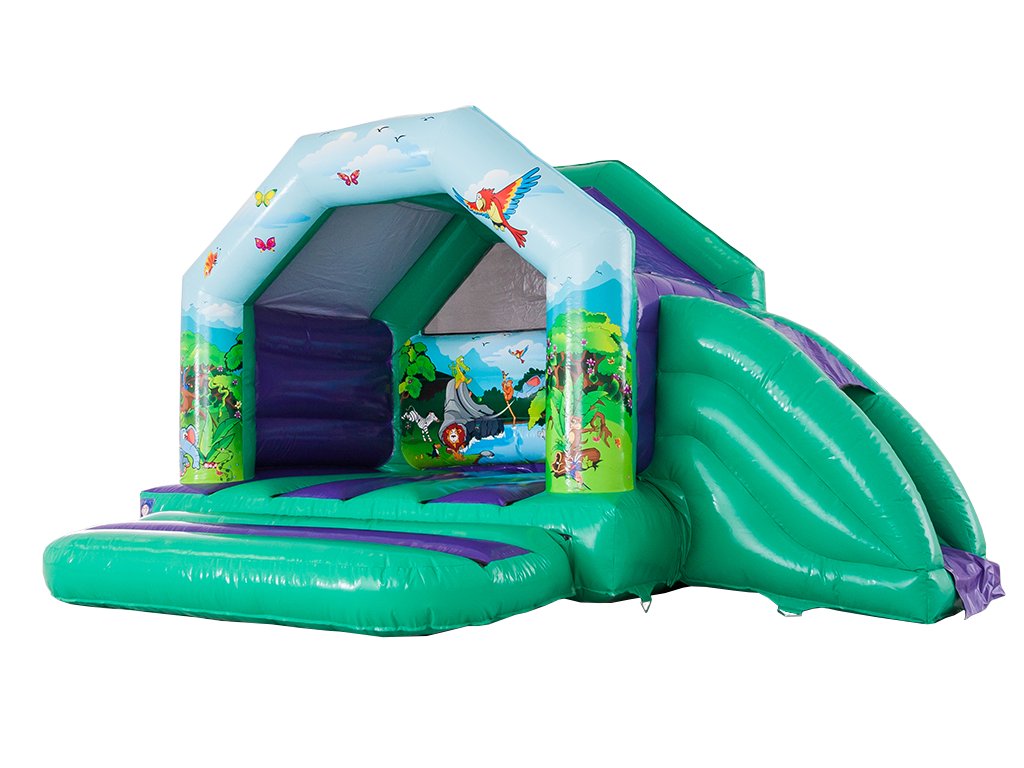Klasické áčkové prevedenie s bočnou mini šmýkačkou – kompaktná nafukovacia atrakcia vhodná pre chlapcov aj dievčatá. Vďaka svojej veľkosti a nízkej hmotnosti je ideálna pre menšie akcie, školy, škôlky či rodinné podujatia.